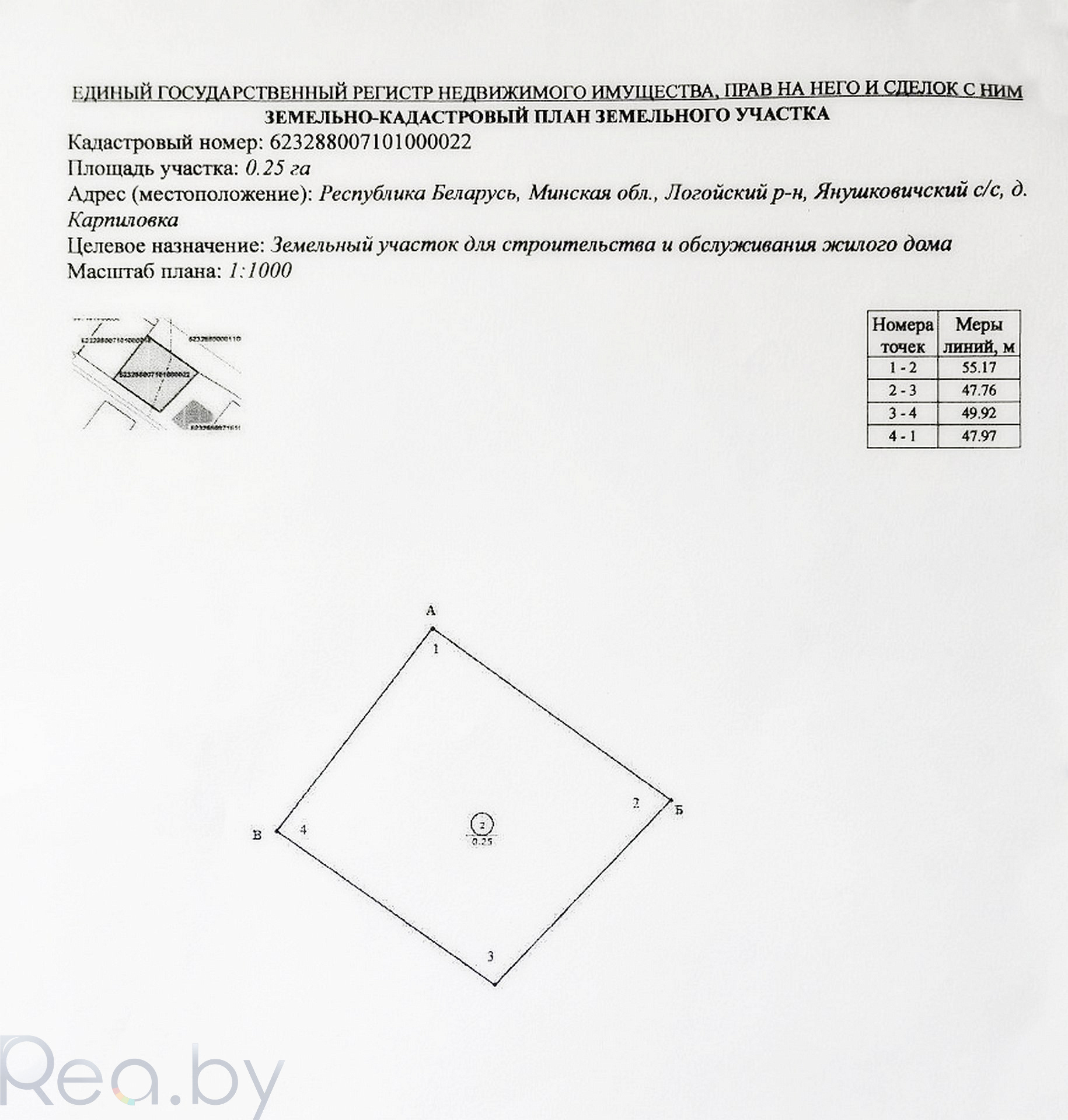 • Площадь: 25 соток (0,25 га).